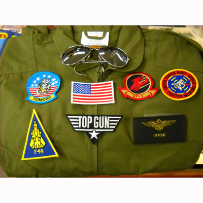 Looking for a great Halloween Costume? This authentic looking Top Gun costume comes with 6 embroidered patches, a pair of authentic aviator sunglasses and a flight suit. Flight suit is Air Force style, poly/cotton, long sleeve, 2 way front zipper,